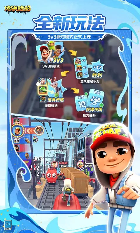 全新九州地图华丽登场,一场新春派对蓄势待发!《地铁跑酷》号召老朋友《奥特曼》联动再启,光之小队集结归来,在跑酷中释放光的力量!等等...派对怎能少得了新朋友加入?《地铁跑酷》还带来《元梦之星》全新联动,邀请各位玩家开启“元”梦之旅。这个春节,告别单枪匹马,拉上亲朋好友一起组队,加入3v3派对全新玩法,点燃竞技场!新春红包雨狂撒不停,多重福利待你领取,1月16日不见不散!