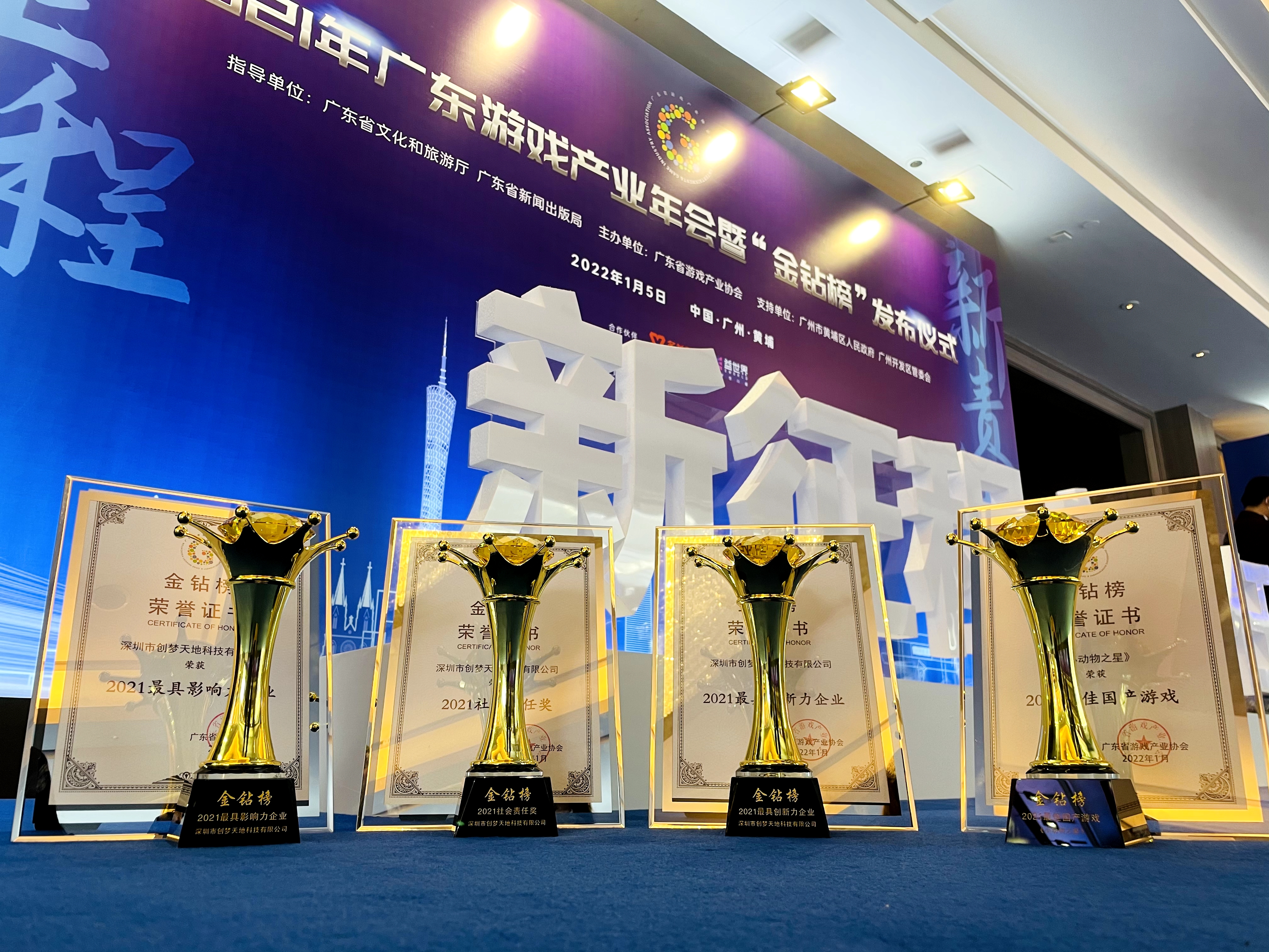 2022开年,我们再斩获了4个“金钻榜”奖杯。2021最具影响力企业——创梦天地2021社会责任奖——创梦天地2021最具创新力企业——创梦天地2021最佳国产游戏——《小动物之星》2022年1月5日,2021广东游戏产业年会暨“金钻榜”发布仪式在广州黄埔区召开。广东省游戏产业协会(GEGIA)是广东唯一的省级游戏行业性组织,由广东省...